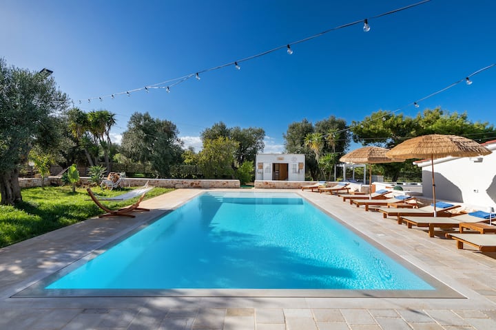 La Dimora degli Ulivi, villa di lusso con piscina, percorso benessere e area olistica per vacanze luxury in Puglia